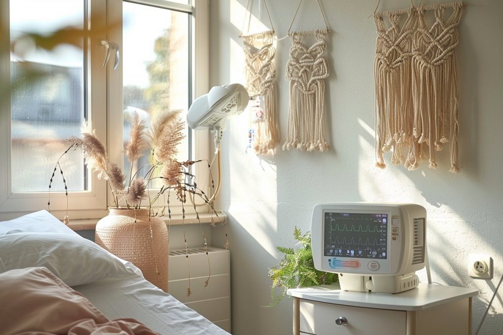 Le choix de rideaux en macramé remplace avantageusement les rideaux traditionnels et crée une atmosphère douce et tamisée. Ce type de décoration permet aux patients de jouir de la lumière naturelle filtrée, tout en ajoutant une dimension esthétique plaisante à la chambre.